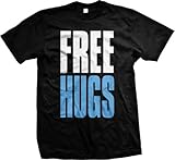 FREE HUGS Mens T-shirt, Big and Bold Funny Statements Tee Shirt, Large, Black